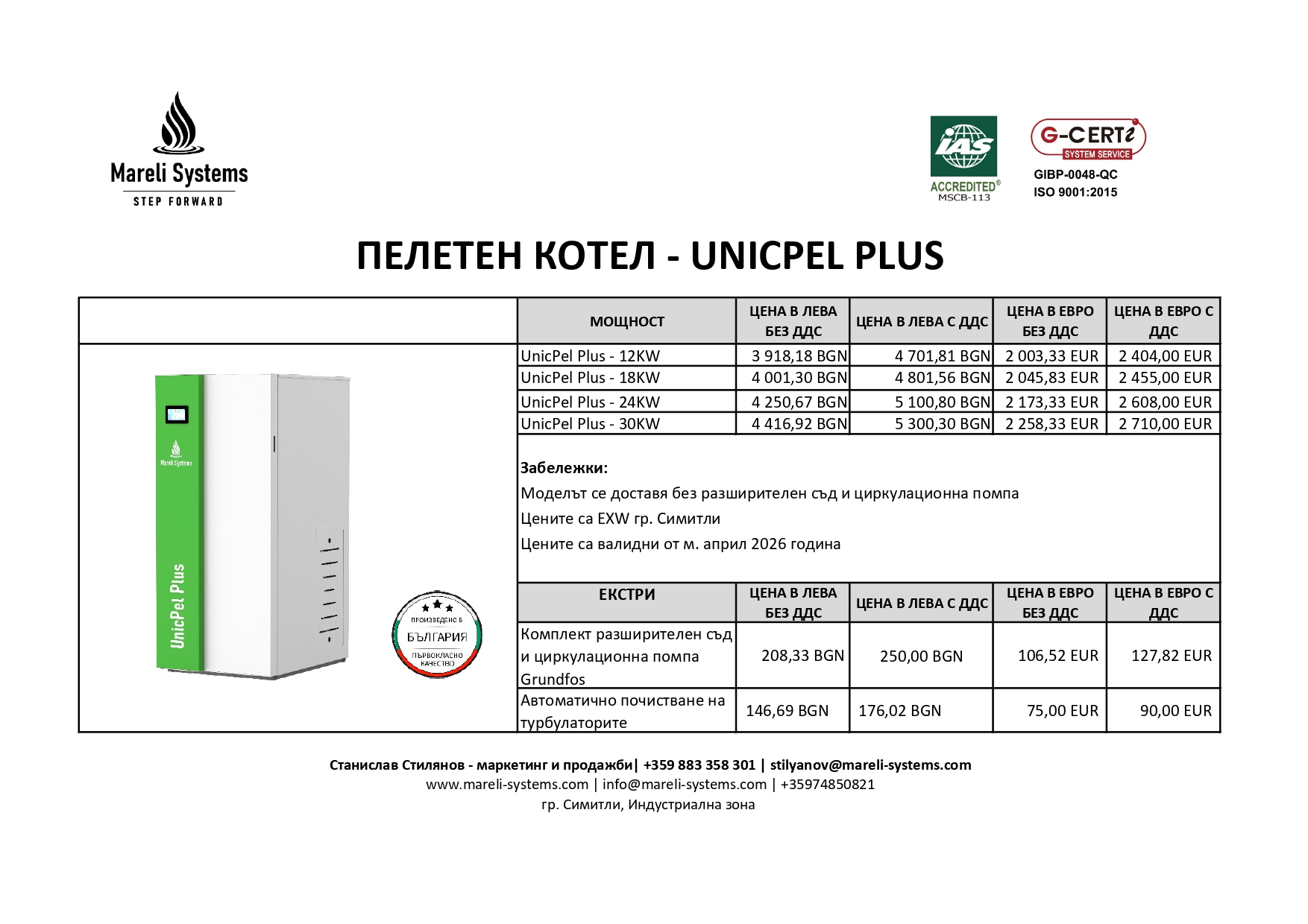 UnicPel Plus 12 - 18 - 24 - 30 Kw - ЦЕНИ