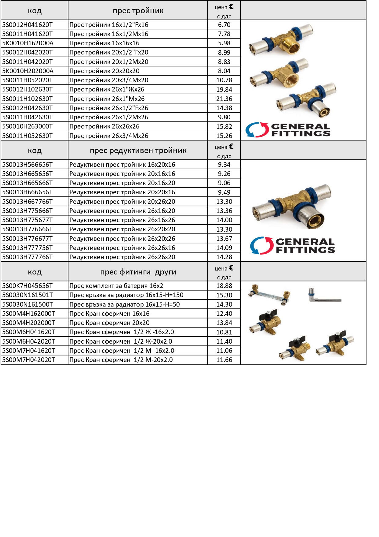 Прес-фитинги за Pex al Pex тръби - ЦЕНИ