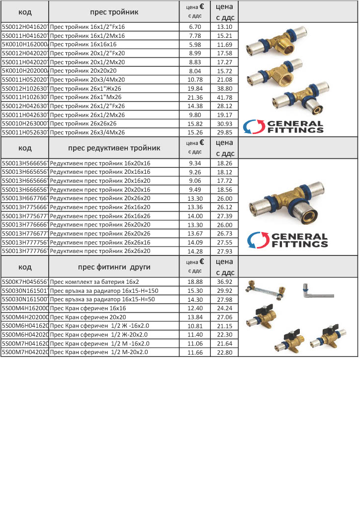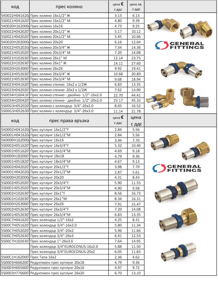 Прес-фитинги за Pex al Pex тръби - ЦЕНИ